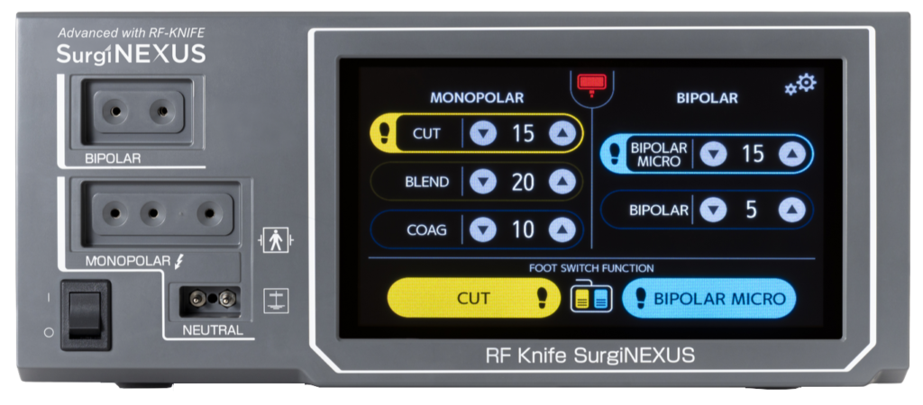 「サージネクサス」は、弊社RF knifeシリーズにおける次世代製品として開発し、医療現場のニーズを反映した操作性・安全性・汎用性の向上を実現しております。